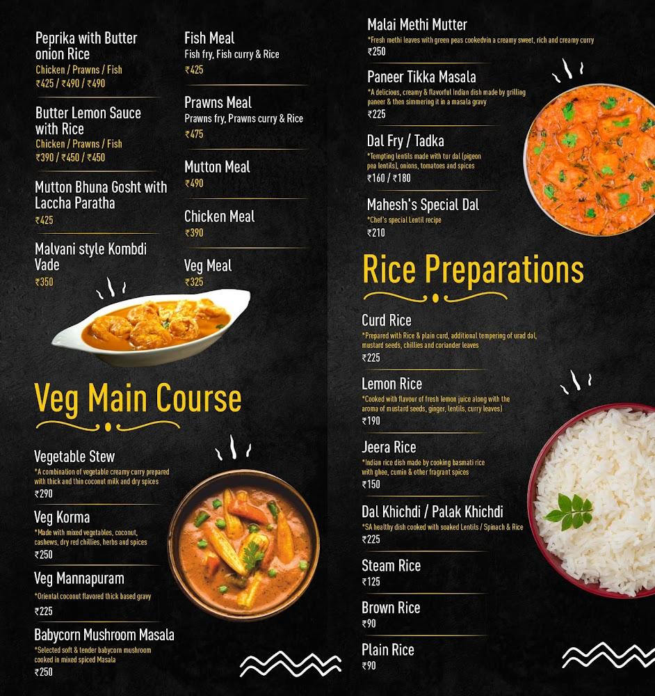 Mahesh Lunch Home showcases a diverse menu rooted in authentic coastal cuisine, framing it as more than just a restaurant but a culinary adventure. Seafood reigns supreme here, with highlights like the Surmai Tawa Fry and the Mahesh Special Crab that showcase the freshness of the ocean.